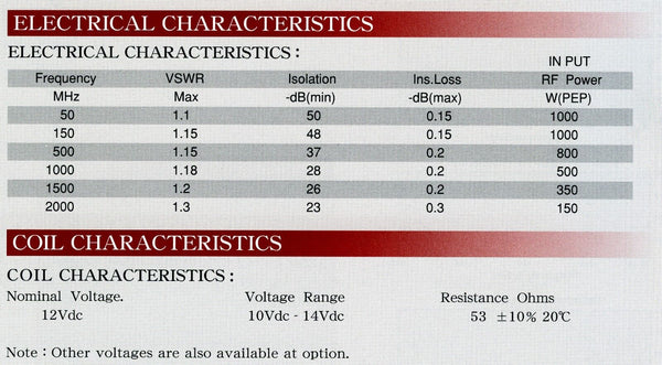 Frequency VSWR Isolation Ins.Loss IN PUT RF Power